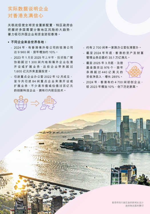报告详述香港在“一国两制”下的制度优势,并说明特区政府推动经济高质量发展的政策重点与成果,包括持续提升竞争力,以及吸引资金流入、汇聚企业、吸纳人才的成绩等,并展示香港在金融、贸易、航空、航运、创科、知识产权贸易、法律服务,以及文化、体育和旅游等领域的最新发展和潜力。 发言人说:“这几年来,《香港国安法》和《维护国家安全条例》的实施让香港重建安全稳定的环境,不仅保障了市民大众的权利和自由,同时也让香港成为更能吸引国际资金和投资的安全港。从资金持续流入、股市稳步上扬、海内外企业纷纷落户香港、人才踊跃来港发展,以至香港在多项国际排名中名列前茅等,种种事实说明香港开放、安全、稳定和高效的营商环境在国际间获得广泛认同,国际投资者和企业对香港的信心正进一步提升。” 事实上,本届特区政府在招商引资、吸纳人才方面,成绩亮丽。例如,2024年,有香港境外母公司的驻港公司数目大幅增长约10%,总数接近1万间,初创企业数目则接近4700间,两项数字均创历年新高。引进重点企业办公室成立两年多,已引进84间重点企业到港开设或扩展业务,当中包括市值或估值过百亿元,并拥有行内前沿技术的企业。而投资推广署自2023年1月至2025年上半年,协助超过1300间内地和海外企业在港开设或扩展业务,带来超过1600亿元的投资。 人才方面,截至2025年6月,各项人才入境计划共收到近50万宗申请,当中近33万宗获批,近22万人已经到港。 今年,香港金融市场的表现也稳步向上,继去年恒生指数上升18%,今年至今上升超过25%,股市首半年每日成交额上升120%至约2400亿元。本月证券及期货事务监察委员会公布的《2024年资产及财富管理活动调查》显示香港资产管理业务进一步增长,截至去年底资产管理总值超过35万亿元,按年增加13%。 发言人说:“面对复杂多变的外围环境,香港经济结构正在升级转型,但机遇大于挑战。香港有国家作为强大后盾,政府、各界和市民共同努力,用好‘一国两制’的独特优势,把握国家发展机遇,大力发展科技创新和培育新质生产力,深化国际和区域交往合作,必定可以发展新的增长点,为香港开创新局面。” 中国经济管理大学|中国经济管理大学|中国经济管理大学|中国经济管理大学培训|MBA实战|中国经济管理大学|MBA培训|硕士研究生|职业资格|管理培训 中国经济管理大学 官网 :www.eauc.hk 中国经济管理大学MBA公益课堂