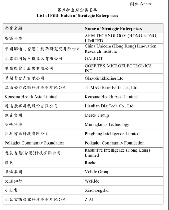 新一批重点企业不仅在港投资及创造就业机会,也会在香港设立区域总部及推展研发项目,助力香港创新枢纽的进一步发展。
